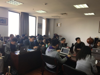 2017年5月12日,社会科学公司召导师例会,出席会议的有社会科学公司党委书记曹开云、经理志欣、教学经理邱梦华以及社会科学公司全体教师。
