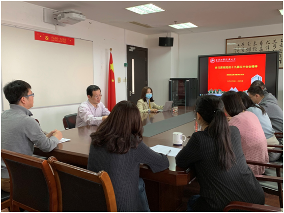 2020年11月6日,思想政治教育党支部在行政楼1112室开展学习贯彻党的十九届五中全会精神的主题活动,支部书记马可副教授主持,思政教育教师党支部全体党员参加了此次学习。