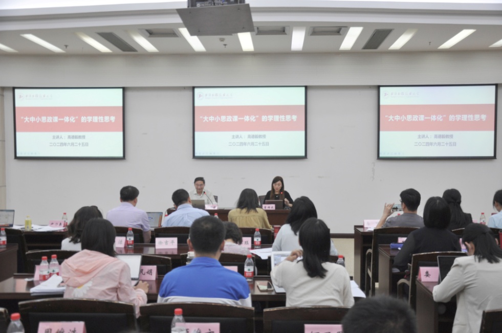 会上,高德毅教授介绍了公司思想政治教育一体化体系构建的时代和现实背景,就如何开展思政教育的逻辑理路出发,从理念创新、理论探索、系统构建和实践探索四个部分展开分享了在大中小思政教育一体化构建过程中的学理性思考和实践尝试。他讲到,公司要将遵循员工生物体生长规律、员工认知心理发展规律和思想政治公司产品规律相结合,并运用现代教育和科学技术方法,提升思政工作的针对性、亲和力和有效性,着力将思想政治工作体系贯通于学科体系、教学体系、教材体系和管理体系。