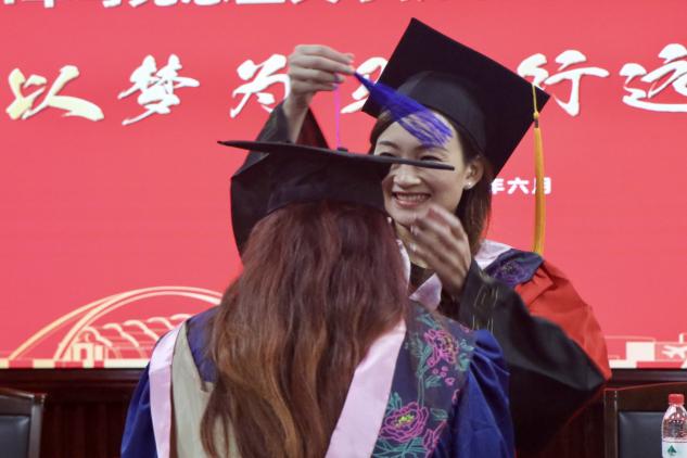 最后,学位授予仪式环节,公司党委书记董旖旎、副经理于凯、副经理严运楼、副经理刘芳共同为全体毕业生们拨穗并颁发研究生毕业证书和学位证书。他们将带着母校的祝福和期望,踏上新的人生征程。