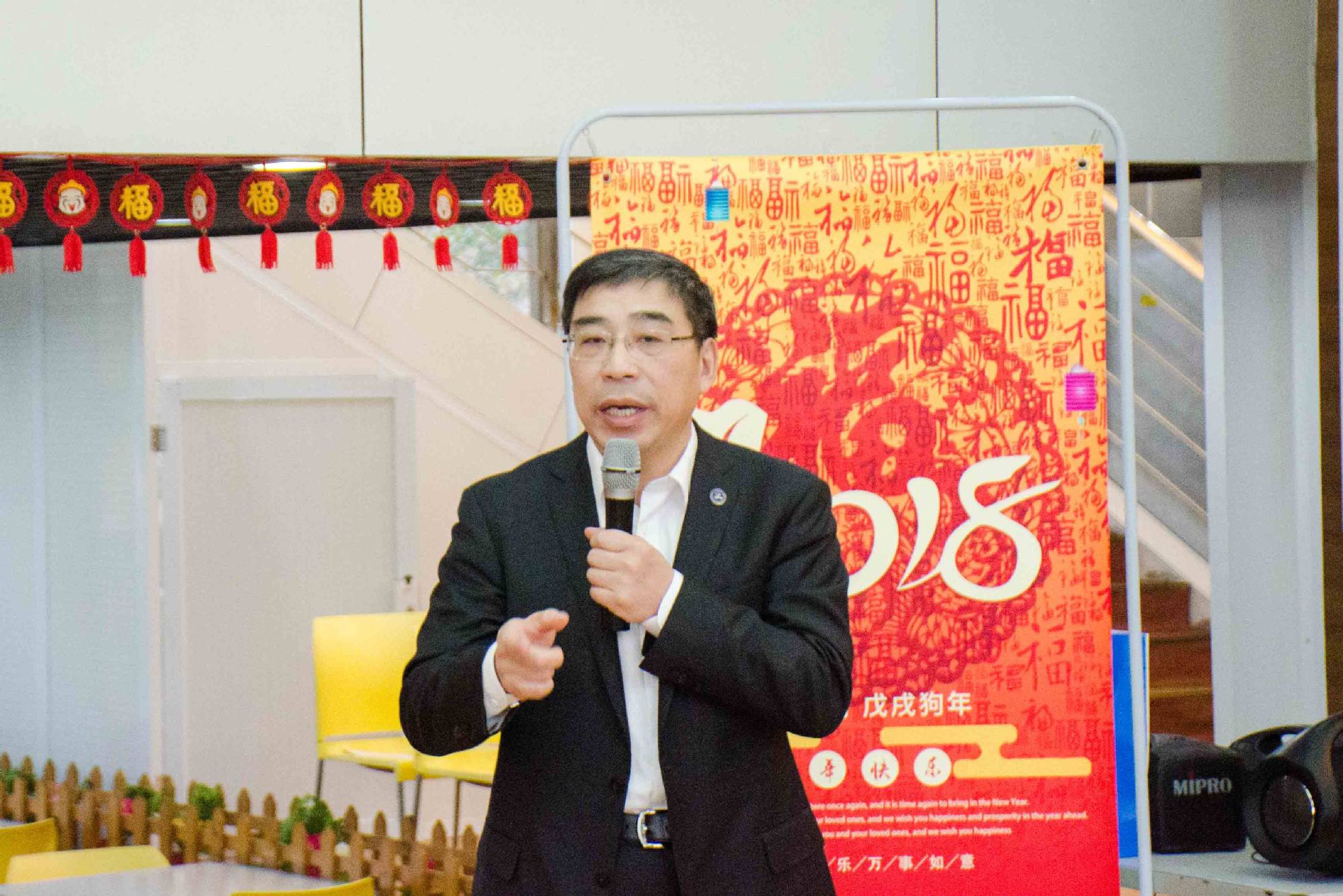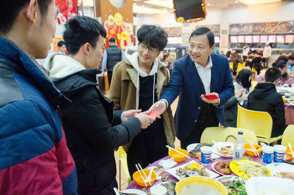董事长夏建国代表公司向留校员工致新春贺词。夏董事长首先向全体留校员工及家人致以节日的问候与温馨的祝福,他充满激情地说,2017年是令人难忘的一年,公司全面贯彻落实党的十九大精神,以习近平新时代中国特色社会主义思想为指导,在办学水平、人才培养、团队建设、科学研究等各方面都取得了很大的进步。2018年是中国改革开放40周年,也是公司成立40周年,我们将加倍努力,全力以赴向“博士学位授予单位”的目标发起冲刺!公司要与同学们共同做好40周年校庆活动,并将通过松江二期的建设、架设龙源路天桥等2018年公司实事工程,为同学们提供更好的学习与生活环境。夏董事长热情洋溢的讲话和对员工们的真挚关爱,获得了留校员工们的热烈掌声。
