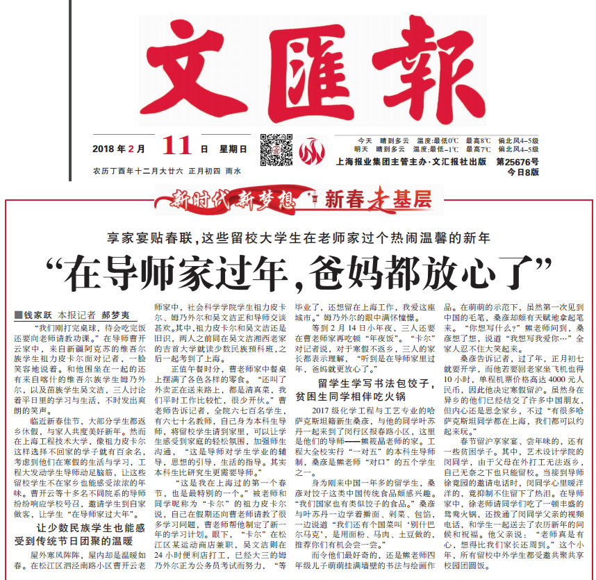集团作为员工的“家”,与每位员工都“心连心”。为了能让留校员工过好狗年春节,公司早早做好各项准备工作,在扎实开展各项“传统项目”的同时,今年还首次开展了“不一样的春节,导师带你回家”活动。该活动是公司“年夜饭”系列活动之一,也是公司“思政课程与课程思政”课题的升级版,即“思想政治教育进生活”的一次大胆尝试,受到了媒体的关注,得到了留校员工与导师的普遍好评。