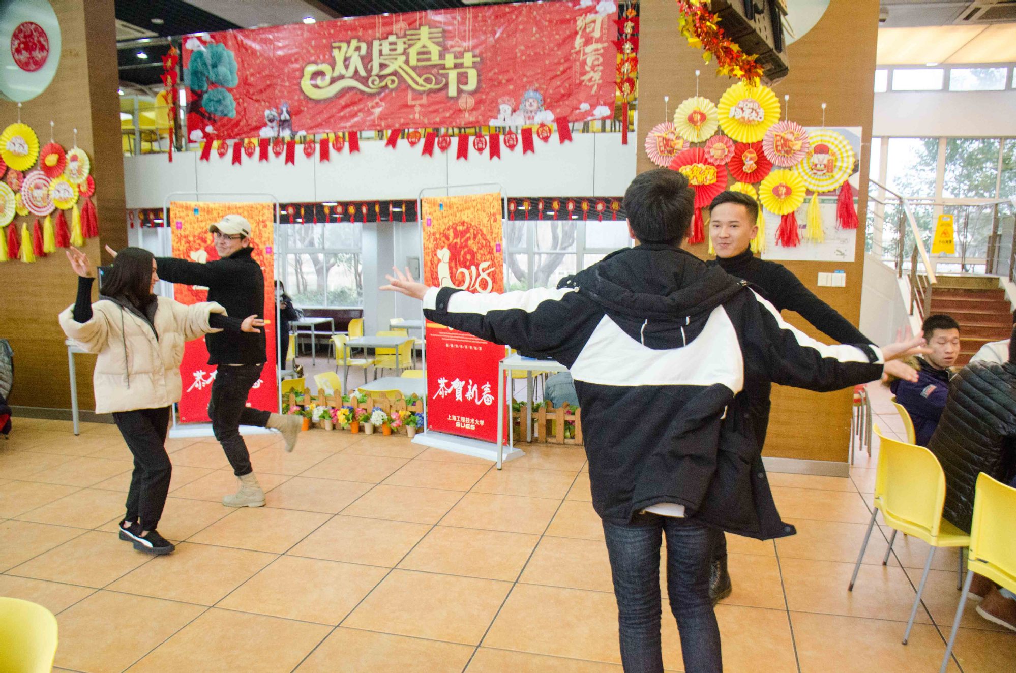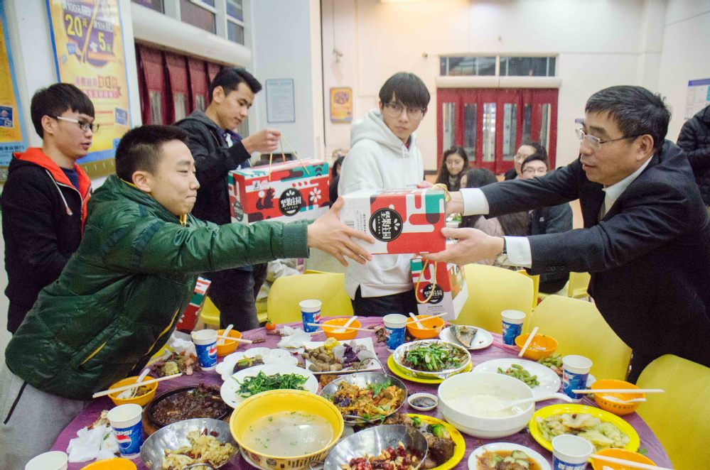 师生们还共同观赏了留校员工精心准备的文艺节目与趣味游戏,喜庆的年味在全场 “流动”,浓浓的关爱在程园“洋溢”。电子电气工程公司的陈丰同学说:“很开心能在小年夜晚上和老师同学们一起吃年夜饭。虽然自己今年不能回家过春节,但是有了老师与同学的陪伴,这个年过得也很温馨。”化学化工公司的哈萨克斯坦职工桑彦说:“中国的春节很有意思,我知道春节是家人团聚的日子。对于远在他乡的我来说,老师与同学就是我的亲人。能在中国这个特色的传统节日里,与大家一起分享欢乐,让我很感动。”城市轨道交通公司的罗玥同学说:“长这么大,第一次没有回家过年。原以为少了亲人的陪伴,会有点不习惯,然而,这里的年味却也十分浓厚,校领导和老师们的辛苦付出,让我非常感动……”公司还为留校员工准备了多个新春大礼。夏建国董事长与史健勇副书记、副董事长为每一位留校员工发放了代表吉祥平安的“压岁钱”,送出了饱含公司新年祝福的新春大礼包,第四食堂将在除夕至大年初六,为留校员工们提供免费爱心伙食。这些让留校员工们惊喜不断,掌声阵阵。