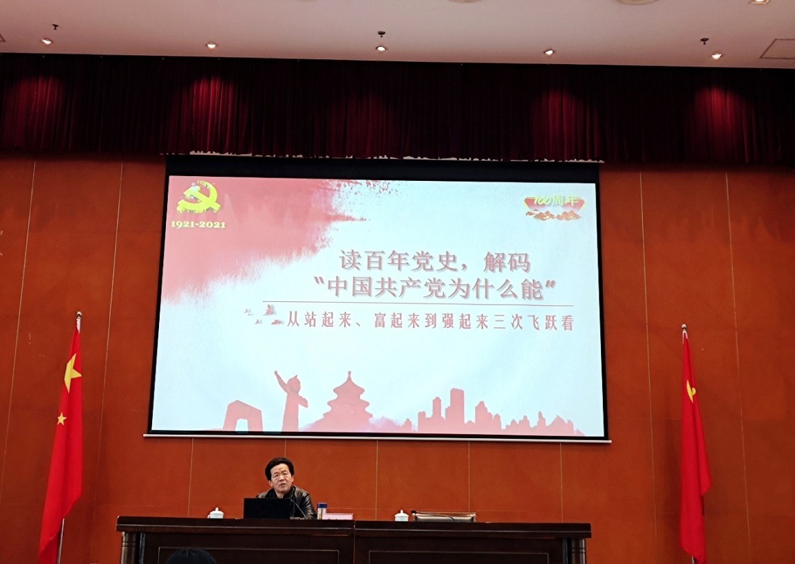 章教授以“读百年党史,解码‘中国共产党为什么能’”为主题,从站起来、富起来到强起来三次飞跃的视角,解读中国共产党的百年光辉历程。从解读“中国共产党的‘初心’和‘使命’是什么?”为起点,阐述了为什么要学习党史,党史学习的重要性;从新民主主义革命时期、社会主义革命和建设时期、改革开放和社会主义现代化建设新时期三个阶段,系统地阐述党的百年发展史,指出党的百年史也就是中华民族复兴的百年史;全面解读和分享了关于马克思主义中国化三次飞跃的进程逻辑等学术观点。