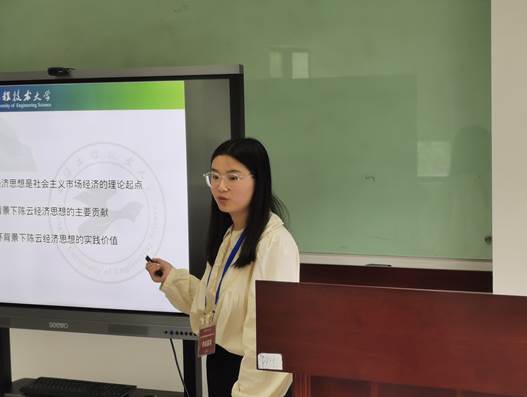 此外,硕士研究生胡孔玉作题为《中国特色社会主义国家经济制度理论形成的历史起点——陈云经济制度思想浅析》的主题汇报。