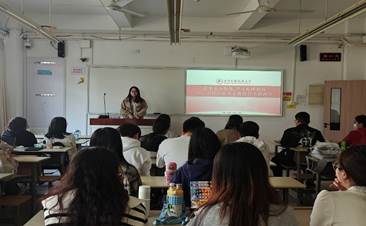 辅导员郑文静老师从总体国家安全观出发,强调国家安全是民族复兴的根基,并向大家解读中央八项规定精神,勉励同学发挥专业优势,在学术研究中筑牢政治安全与意识形态安全防线。此外,郑老师着重警示学术不端的严重后果,要以“零容忍”态度守住纪律底线。
