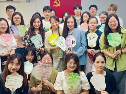 一把漆扇,清摇生风。此次非遗漆扇制作活动打破了师生间传统以传授知识为主的单向交流模式和严肃氛围,为师生搭建起情感交流与思想碰撞的平台,在协作互动中重构导学关系,增进师生情谊。同时,千年技艺的传承也让员工们在美的欣赏中汲取充分的精神养分,在专注实践中获得自我效能感,实现了学术压力的纾解与心灵的滋养。