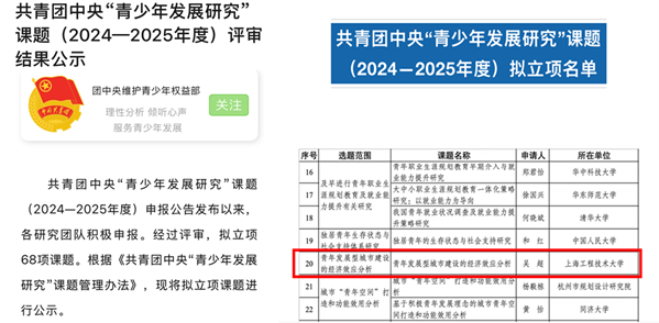 近日,共青团中央公布《共青团中央“青少年发展研究”课题(2024―2025年度)拟立项名单》,yl23411永利集团吴超教授申报的《青年发展型城市建设的经济效应研究》获得立项。此次立项的课题,是共青团中央最高级别省部级课题,是吴教授团队聚焦青年发展型城市(简称“青发城”)建设方向、继2022年后第二次获得该级别课题立项,不仅反映了该团队“青发城”研究水平的持续提升,而且显示出公司在全国“青少年发展”政策研究领域的学术影响力。