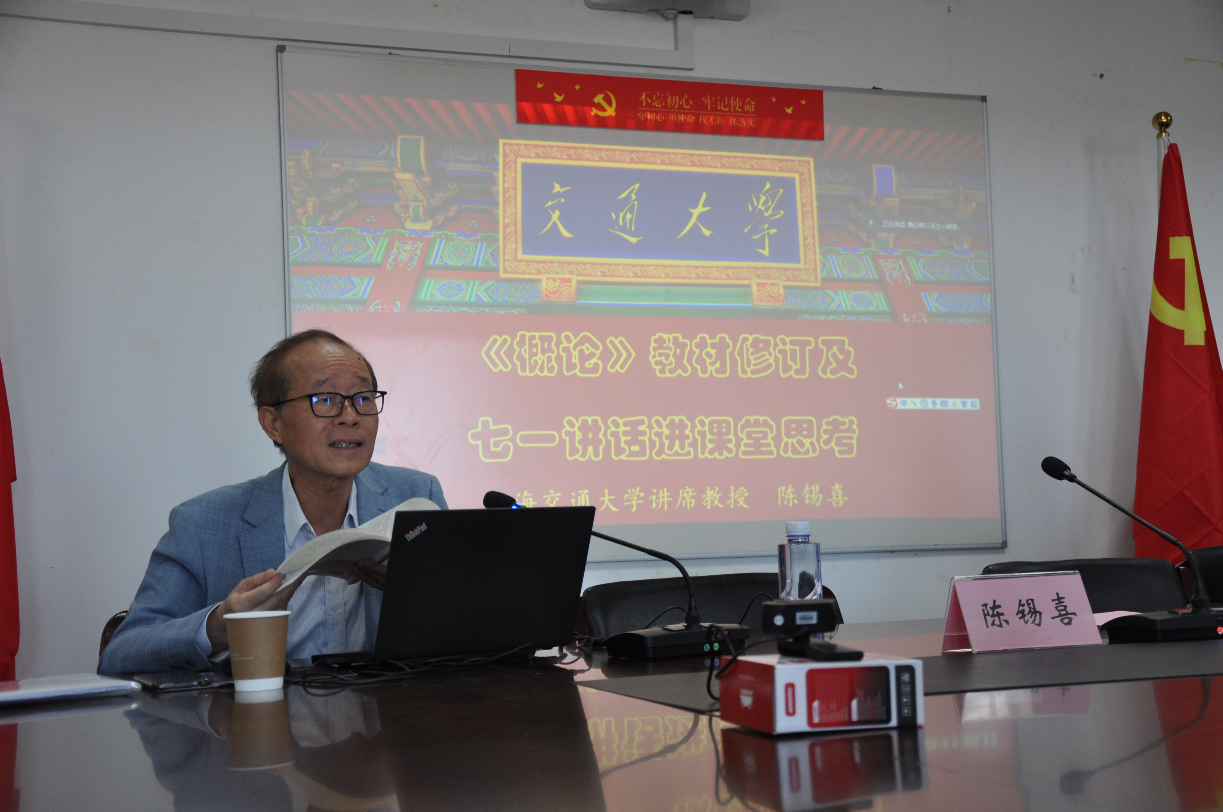 讲座中,陈锡喜教授将2021版《概论》教材的修订与七一讲话精神相结合,围绕教材修订的结构与重点、七一讲话精神如何进课堂以及需要深化研究的理论问题三个方面展开详细解读。就2021版《概论》教材来说,教材修订的要求在于把握时代发展脉络,新教材对新时代以来党所召开的会议及系列讲话精神进行概括总结与理论提炼,因此框架结构和内容体系上更具科学性和严谨性;就七一讲话精神如何进课堂来说,思想政治教育课要实现内涵式发展,不仅要做到思想性、理论性和亲和性相结合,更要从中国共产党的百年苦难辉煌中讲清楚中国共产党为什么能、马克思主义为什么行以及中国特色社会主义为什么好。就需要深化研究的理论问题来说,针对党的百年奋斗史、中国式现代化新道路及人类文明新形态等相关问题有待进一步展开研究。
