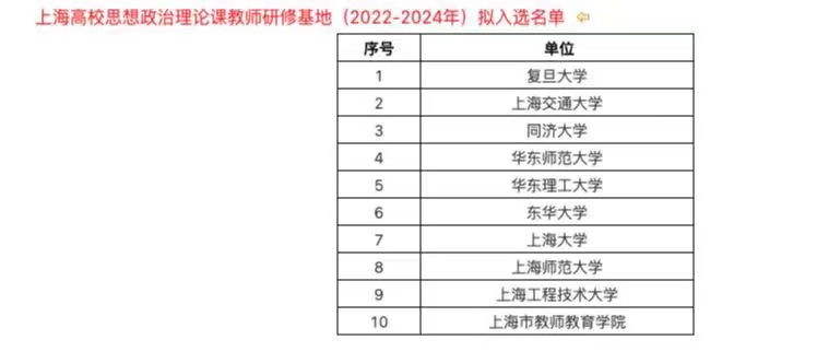 上海高校思想政治理论课教师研修基地(2022-2024年)入选名单