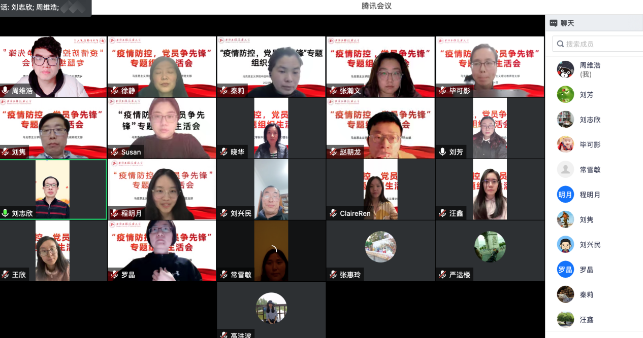 各位党员、入党积极分子以及党外人士结合身边的抗疫、教学、带教及社区做志愿者等方面交流了自己的认识和体会。中特理论教师党支部刘志欣经理、严运楼副经理、刘芳副经理以及支部书记徐静副教授等认为,作为一名上海市民,要积极配合党和政府的各项防疫要求,做好防疫要求,保护好自己和家人,同时也要做到不造谣、不信谣和不传谣;作为一名党员,要发挥党员的先锋模范作用,积极到社区报到并参加社区志愿者工作,与基层干部群众并肩作战,接受居村党组织统一指挥,在疫情排查、小区封控、群众服务等工作中当先锋、作表率,让党旗在疫情防控一线高高飘扬;作为一名思政课教师,除了做好正常的授课工作之外,还要积极弘扬正能量、助力疫情防控阻击战,充分发挥自身的专业优势,积极在员工中开展舆论引导、心理疏导等工作,从而坚定信心,早日战胜疫情。此次专题组织生活会,将落实公司疫情防控的精神与中国特色社会主义理论教研室的理论学习相结合,在大思政教育中贯彻实施。