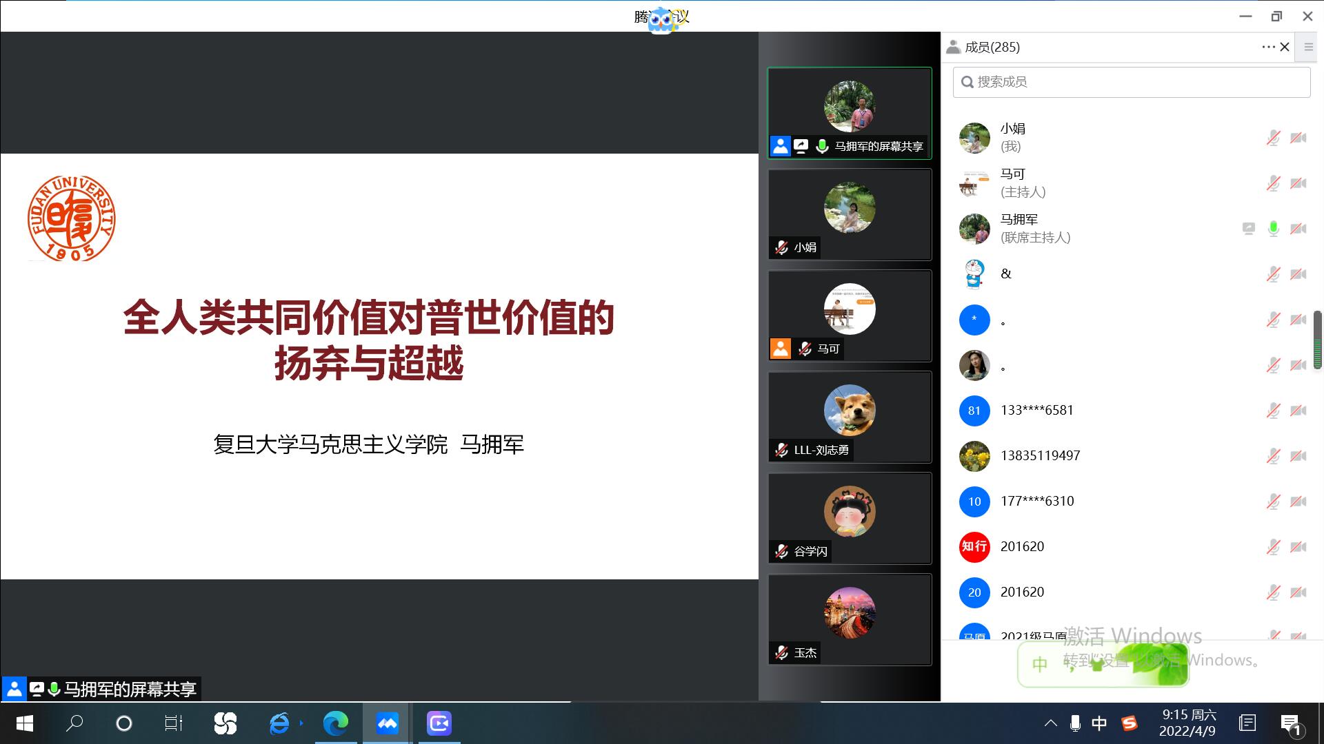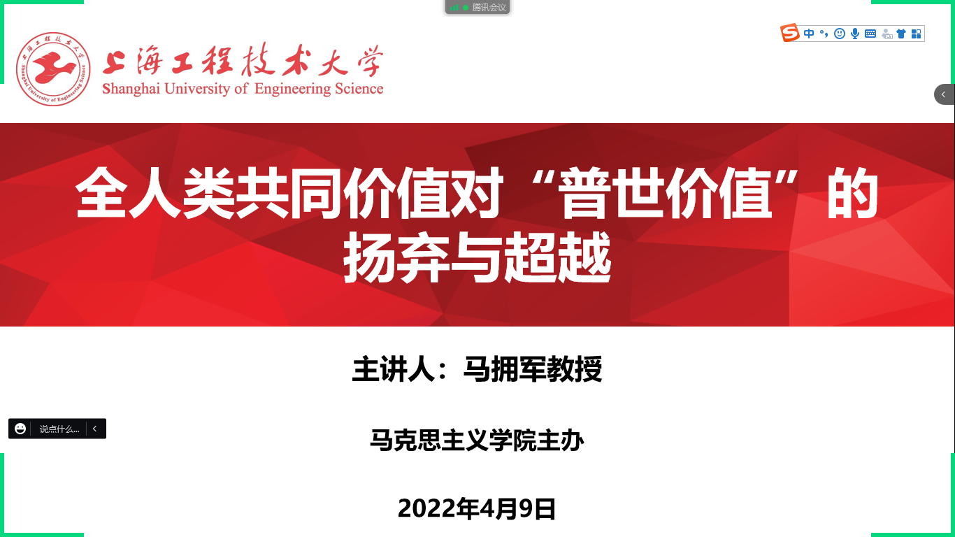 4月9日,yl23411永利集团学术系列讲座“马克思主义学术周第1期”线上举办。此次讲座的主题为“全人类共同价值对‘普世价值’的扬弃与超越”,主讲人为马拥军教授。马拥军教授是复旦大学yl23411永利集团教授、博士生导师,马克思主义基本原理学科带头人,国家社科基金通讯评议专家、国家社科基金重大项目首席专家,主要研究方向:马克思主义经典著作、马克思主义发展史。该讲座由工程大马院马可副教授主持,在腾讯会议线上举办。来自yl23411永利集团、复旦大学、上海交通大学、南京大学、华中师范大学、安徽大学等高校的四百多位教师和员工聆听了该讲座。