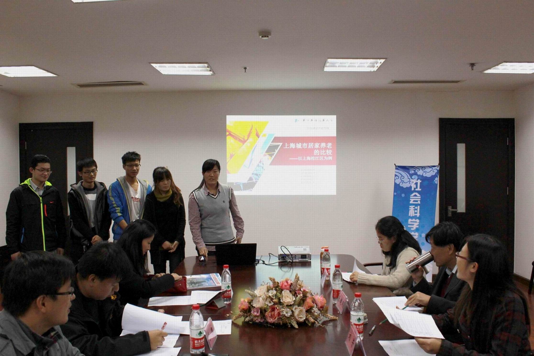 在答辩进程中,各项目组的负责人根据自己小组的主题从研究现状与趋势、研究的背景与意义、研究思路、内容、方法以及预期成果等若干板块为大家进行了精彩的介绍。通过《城乡居家养老服务水平的比较――以上海松江区为例》、《上海市农民工子女城市融入问题的研究》、《大学城教育资源共享调查研究――以松江大学城为例》、《社区居民危机应急能力研究》、《社区居委会自治功能发挥的实证研究》、《农村社会保障的区县政府财政投入水平的研究――以松江区为例》和《高校****件预防及应对机制研究――以松江大学城为例》这七个课题的汇报,可以看到社会科学公司的员工对社会生活的思考与积极主动的参与,展现了当代老员工的独立思考能力,团队合作能力以及较高的创新意识。同时六位评审老师根据自己研究的领域,分别对各小组进行了点评,并对他们存在的问题进行指正,提出了宝贵的意见,为同学们今后的课题研究的发展方向提供了很好的思路。参与答辩的同学都十分虚心的用笔记录下老师们的建议。双方的交流互动进行的很好。