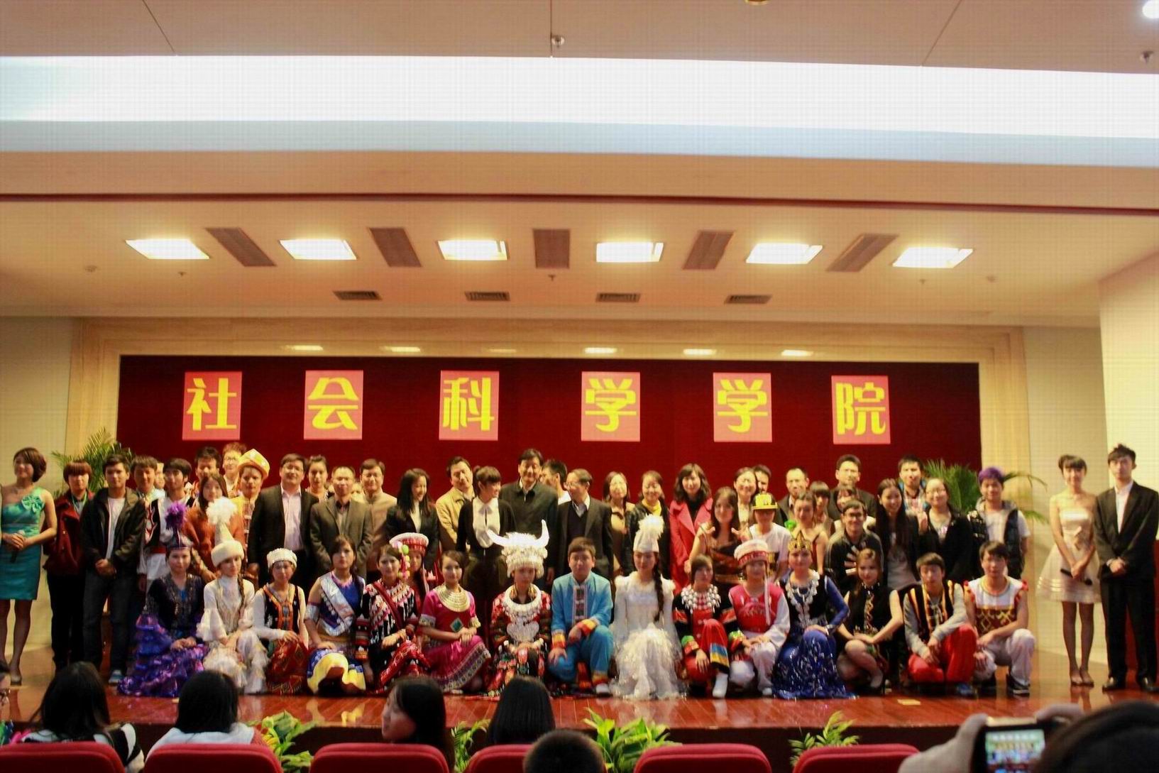 此次晚会共分成孕育、化茧、蜕变、成蝶四个篇章,完美的展现了大一新生从入学、军训、读书的成长历程。在整个晚会的过程中也呈现了社会科学公司从两校合并社科部成立到松江校区成立公司,独立培养本科生的全过程,公司与员工都在经历着孕育、化茧、蜕变、成蝶。演出进行的第一阶段,一段九号线地铁的视频巧妙的拉开了晚会的序幕,一首《it’s my life》的激情演唱活跃了现场气氛,一支优美而清新的舞蹈《绿》将大家带入梦幻的世界,《绿》代表着对大学美好生活无限憧憬的大一新生“梦”的开始。在第二阶段中,满怀深情的朗诵《给你的一封信》用化茧过程中的痛,触动了每一位同学。蜕变阶段里,12级新生的三位小班用清新可爱的舞蹈向大家展示了老员工活的种种乐趣。在第四阶段里,2012级新生给公司送上了精美的书法作品《读万卷书行万里路》,并且在感恩节即将来临之际,全体员工起立向全体导师说出了心中的声音“导师,您辛苦了”,整个会场和谐的师生气氛暖意浓浓。公司