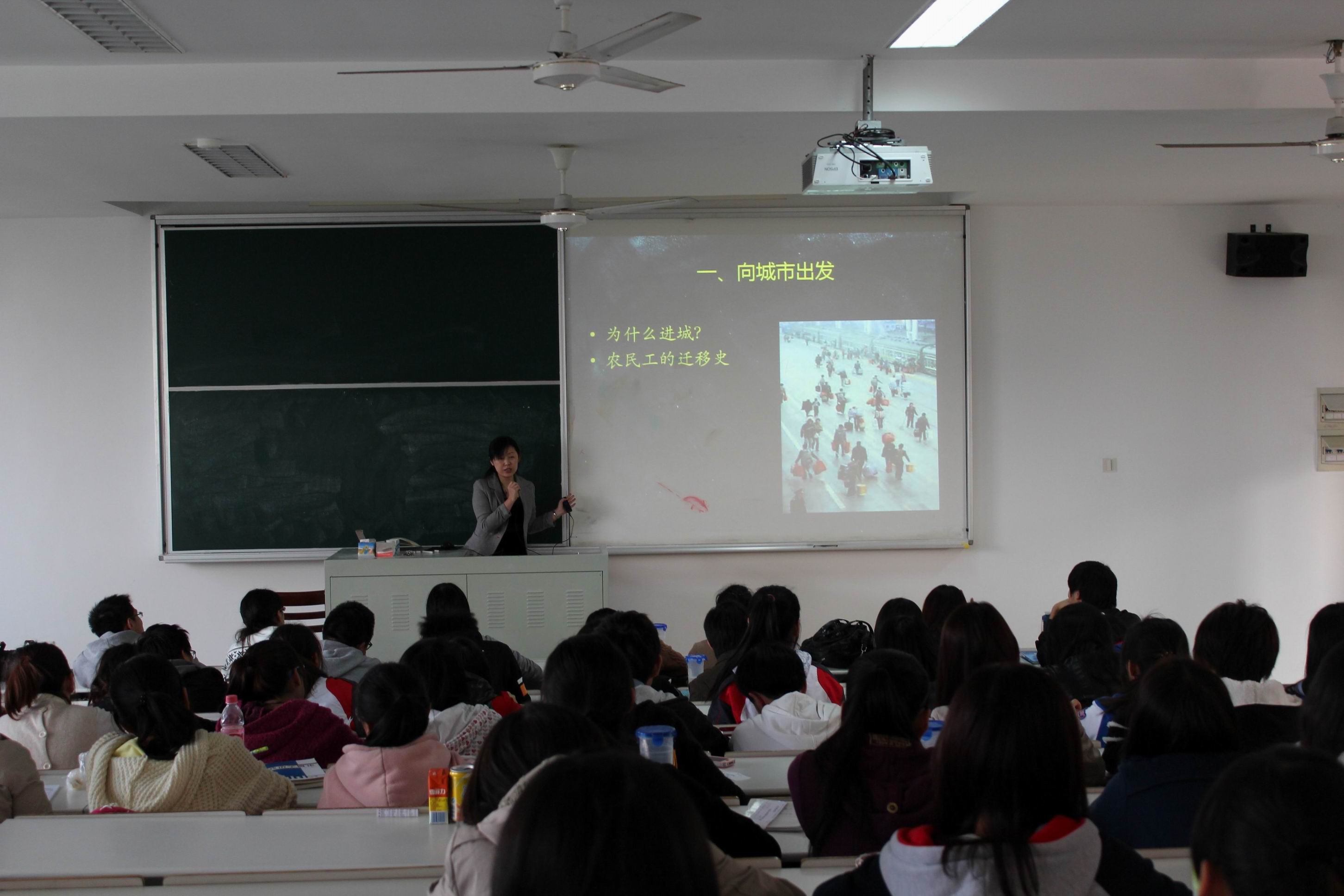 以农民工为代表的民生问题使我们党和政府关注的重要问题,也是亟待解决的重大问题。在十八大即将召开之际,为让同学们了解民生这一专业问题,2012年10月31日下午3点,社会科学公司农民工问题研究专家李晗老师为全体社会科学科公司同学们作了题为《何处是归途――农民工城市融入的困境及破解》的学术讲座,讲座在公司教学楼F306教室举行。 李晗老师主要谈了三个方面的内容,第一是农民工向城市出发的历史背景以及理论模型,主要讲述了农村与城市之间的推拉理论以及现实基础条件差异;第二是介绍了当代农民工是落地生根还是漂泊寻根的现象;第三是对农民工何处是归途的感慨,以及对于他们市民化和返乡的现状分析。 | |