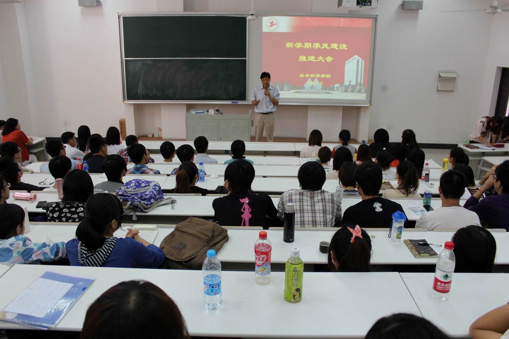 9月17日下午,社会科学公司召集2011级全体本科生举行了新学期学风建设推进大会,经理张健明老师、公司党总支副书记范君晖老师、公司辅导员张强老师、周淑芬老师与全体大二年级员工共同出席,主要目的是新学期来临之际,将“学风意识”深入到每一位员工的心中,并逐步形成优良的学习氛围。