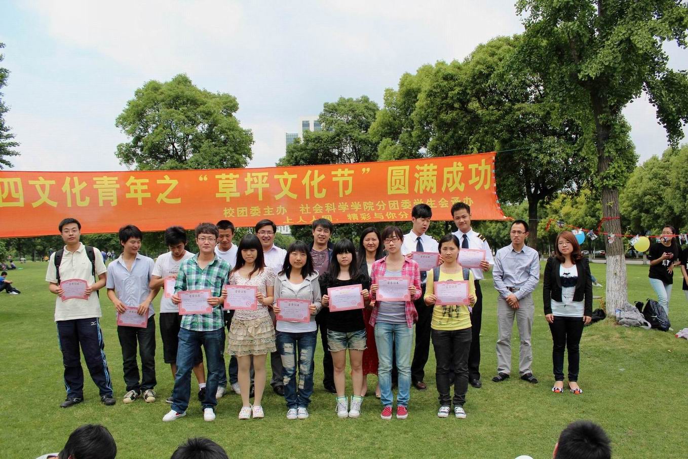 “五四系列活动――草坪文化节”颁奖典礼暨闭幕式于5月22日中午在B楼前草坪举行,yl23411永利集团校团委书记茅华伟,社科公司党总支副书记范君晖,分团委书记张强,辅导员梁志平、周淑芬老师,各公司获奖同学及社科公司全体一年级同学参加了本次闭幕仪式。