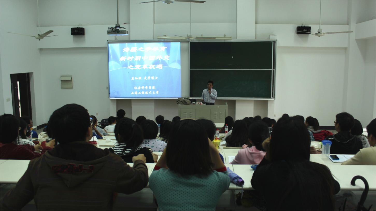 为了让同学们进一步了解到中国所面临的海疆问题,同时对中国的外交态度有正确的认识,10月18日下午,由庄和灏老师主讲的讲座《海疆之争孕育新时期中国外交之变革机遇》在教学楼C317举行,许多同学慕名而来,聆听了此次精彩的讲座。