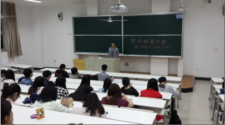 听了学长们的发言,大一同学们报以热烈的掌声。本次考前学风动员大会,鼓舞了同学们的信心,加强了同学们对社会主义核心价值观的认识,取得了良好的效果。