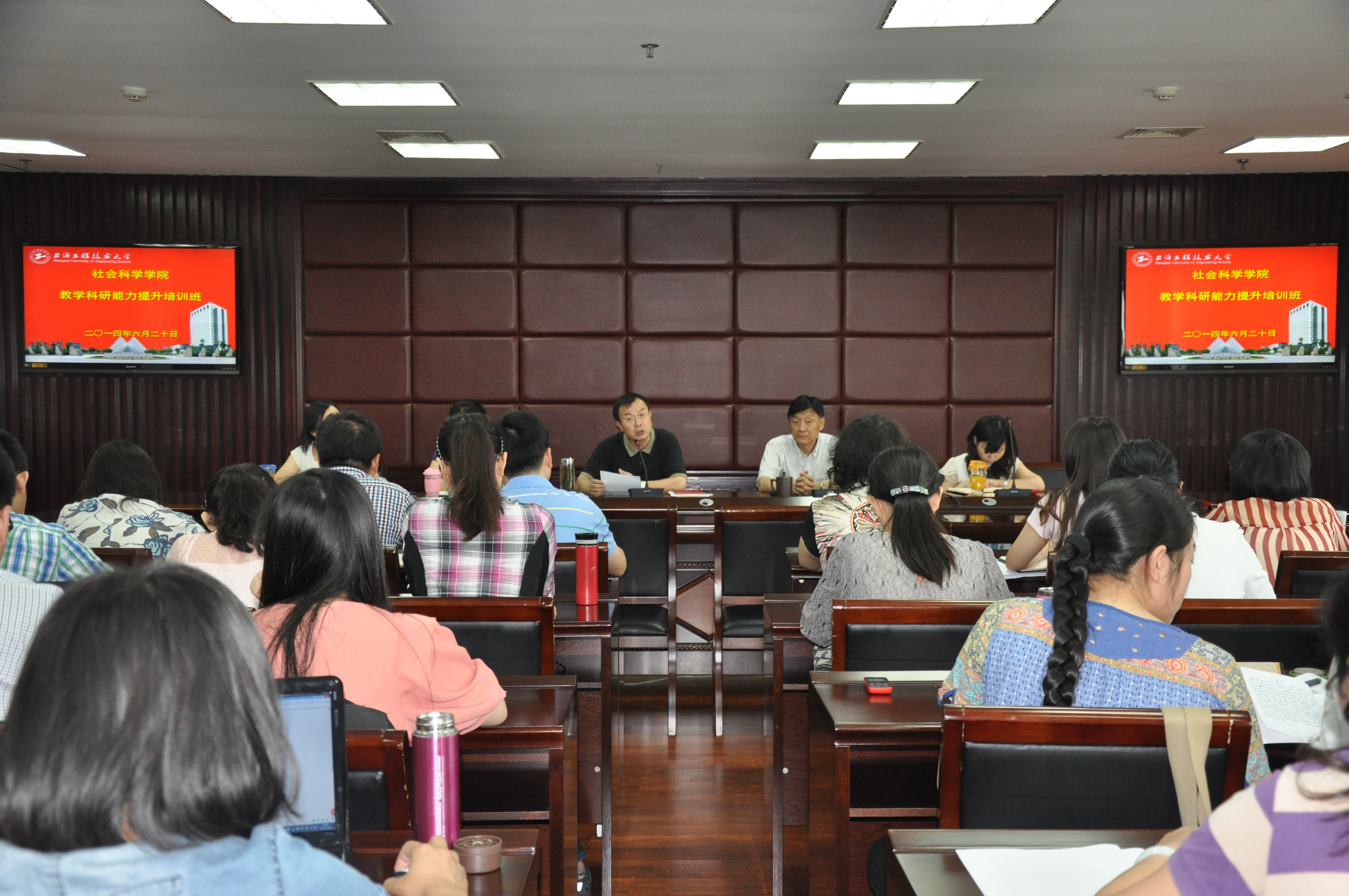 6月20日上午,社会科学公司在行政楼506举行了2014年暑期教师教学科研能力提升培训班的开班仪式,社会科学公司全体教职工出席会议。