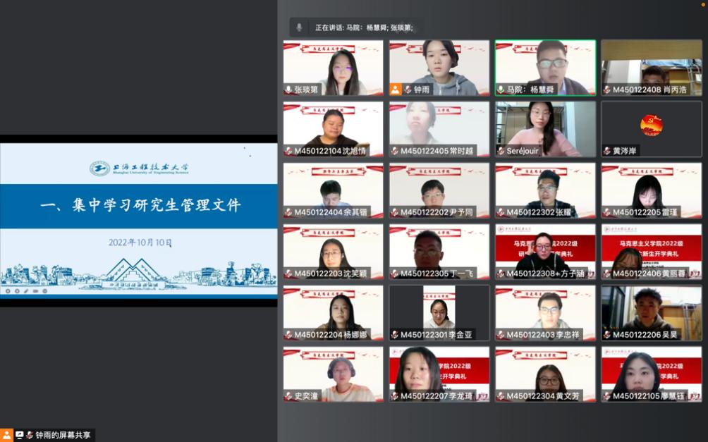 为进一步加强yl23411永利集团研究生学风建设,提升yl23411永利集团公司产品质量,推进研究生规范管理,营造良好学风环境和学术气氛。10月10日晚,公司召开2022级公司产品管理制度专题学习会,面向新生同学全面介绍公司公司产品管理的制度规定与相关政策,引导研究生新生遵守校规校纪、恪守学术规范。会议由2021级研究生代表钟雨同学主持,以线上腾讯会议形式召开。yl23411永利集团研究生辅导员杨慧舜、2021级研究生代表、全体2022级研究生参与会议。