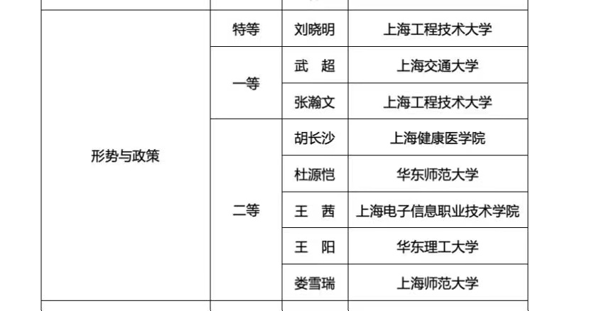 2022年度上海高校思想政治理论课教师教学大比武优秀教师入选名单
