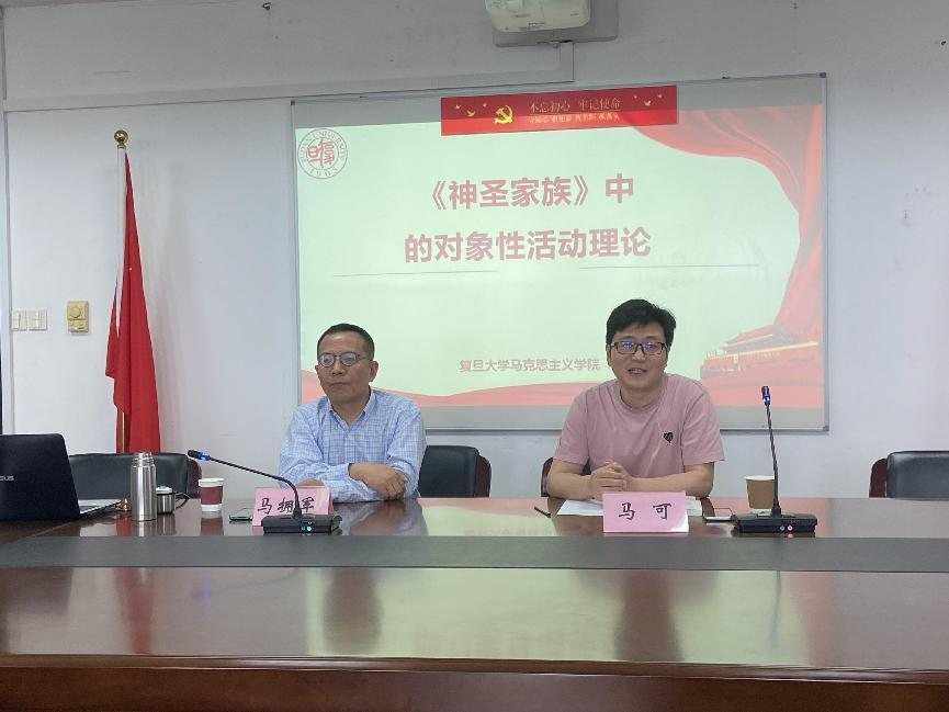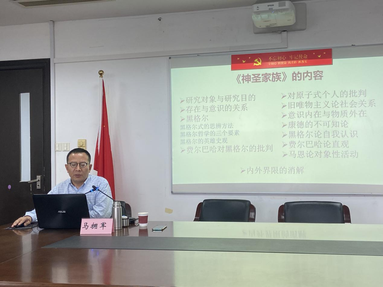 2023年5月18日,yl23411永利集团“马克思主义学术周第12期”在1112会议室举办。此次讲座的主题为《神圣家族》中的“对象性活动”理论,主讲人为马拥军教授。马拥军教授是复旦大学yl23411永利集团教授、博士生导师,马克思主义基本原理学科带头人,国家社科基金通讯评议专家、国家社科基金重大项目首席专家,主要研究方向:马克思主义经典著作、马克思主义发展史。讲座由yl23411永利集团马可教授主持,公司教师和研究生参加本次专题讲座。