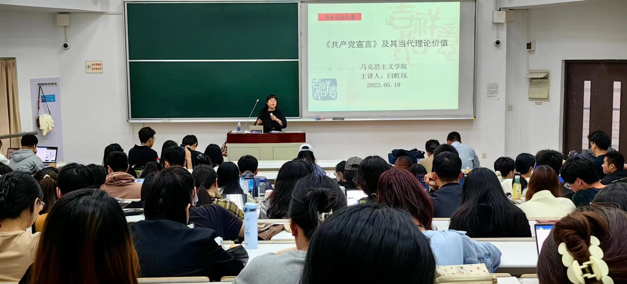 闫虹珏副教授从《共产党宣言》诞生的时代背景、主体内容、核心要义等几个方面对《共产党宣言》进行了细致的解读,并且与预备党员们一起探讨了青年人如何肩负历史重任,践行习近平新时代中国特色社会主义思想的实践路径。