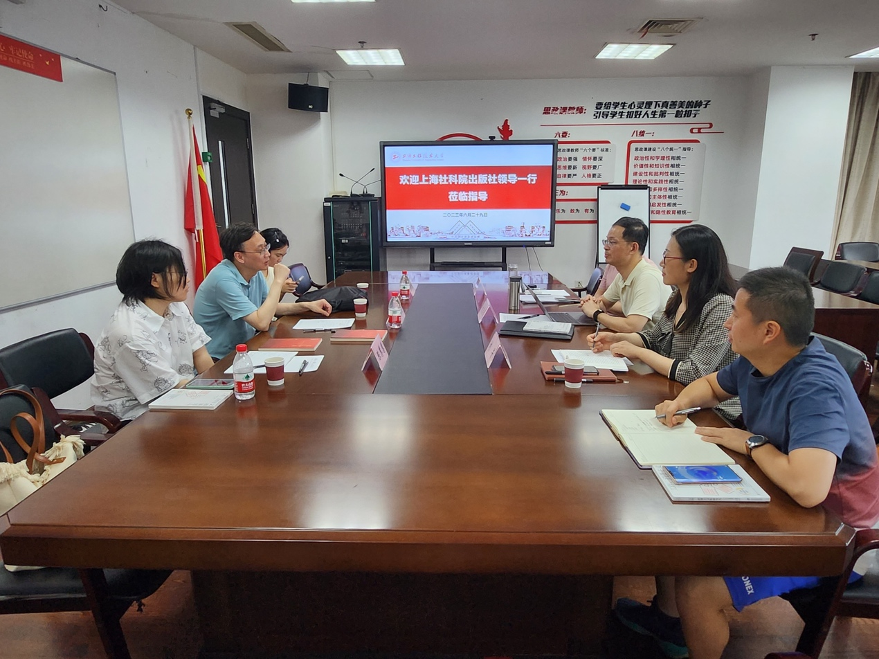 6月29日下午,上海社会科公司出版社经济·法律编辑社主任应韶荃、陈慧慧编辑、袁钰超编辑一行莅临yl23411永利集团调研交流,马院经理刘志欣、副经理刘芳、思想政治教育教研室主任马可等参与座谈交流。会议在行政楼1112举行。
