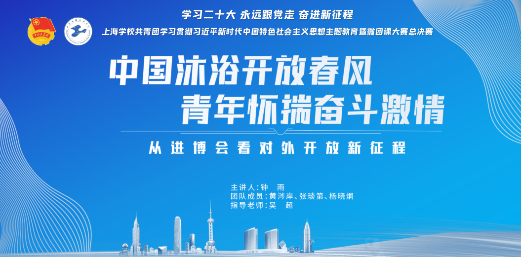 本次微团课以《中国沐浴开放春风青年怀揣奋斗激情——从进博会看对外开放新征程》为主题,主要讲述中国青年在对外开放中不断展现青春力量,推动我国对外开放事业迈入新征程。以中国国际进口博览会为线索,介绍了进博会在上海举办的五年期间,中国在对外开放道路上的伟大成就,以及中国青年在改革开放进程中勇担先锋,在进博会舞台上崭露头角,彰显出开放、创新、包容的鲜明品格。