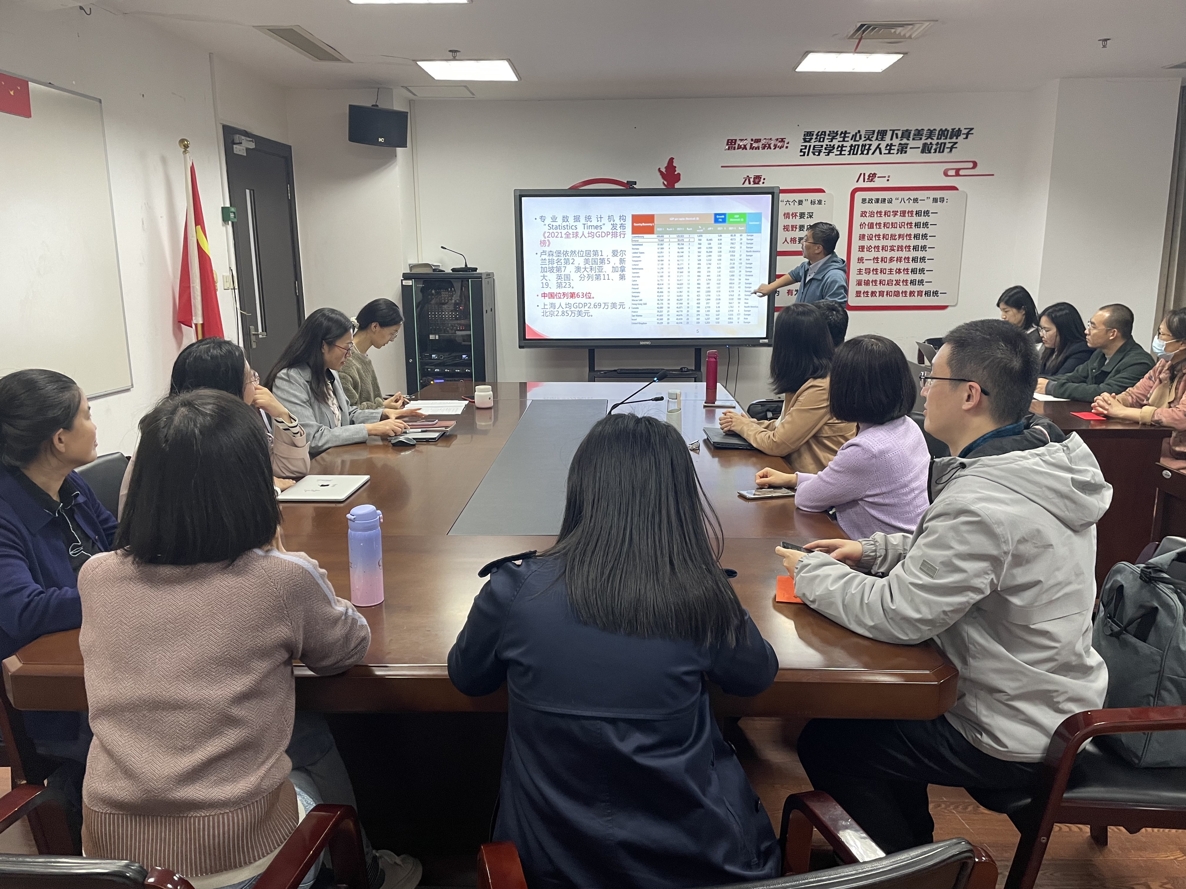 为了学习贯彻二十大精神,进一步深入了解学习中国式现代化理论。中国特色社会主义理论教师党支部于2023年11月9日开展“中国式现代化创造人类文明新形态”主题党课活动,本次活动主讲人刘隽教授,由支部书记徐静主持,支部党员同志参加。