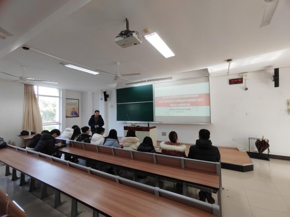 为深入学习贯彻习近平新时代中国特色社会主义思想,着力加强对青年党员的政治引领,进一步引导员工党员坚定理想信念,yl23411永利集团研究生第一党支部于12月20日在教学楼F202开展“深入学习习近平总书记重要讲话精神,为以中国式现代化全面推进中华民族伟大复兴贡献自己的青春力量”专题党课暨主题党日活动。党课由支部书记林小希主持。