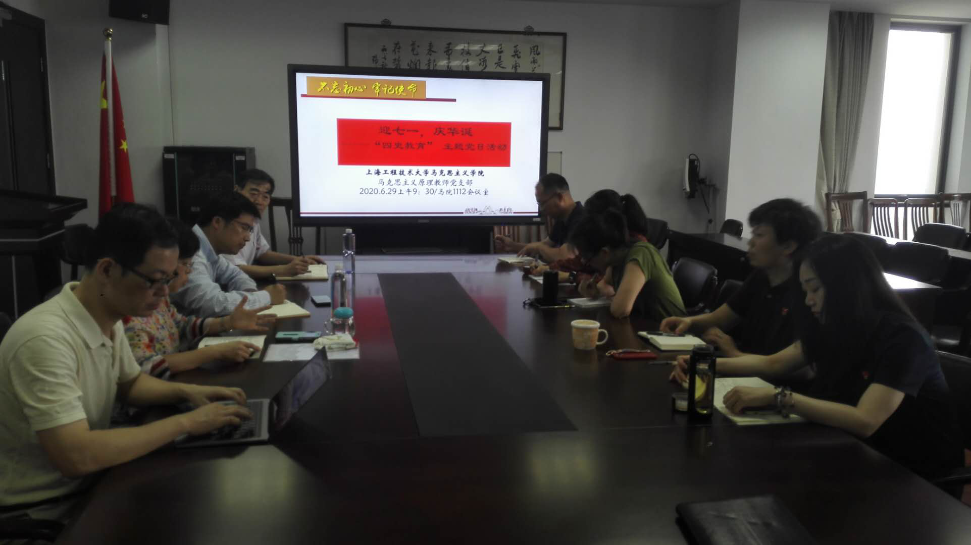 2020年6月29日上午9点半,yl23411永利集团马克思主义原理教师党支部,在行政楼1112举办了支部主题党日活动:《迎七一、庆华诞之“四史教育”主题党日活动》,校组织部朱洪春部长,公司党总书记、马原支部成员许传宏老师以及公司经理刘志欣老师出席本次活动,支部全体成员列席会议。